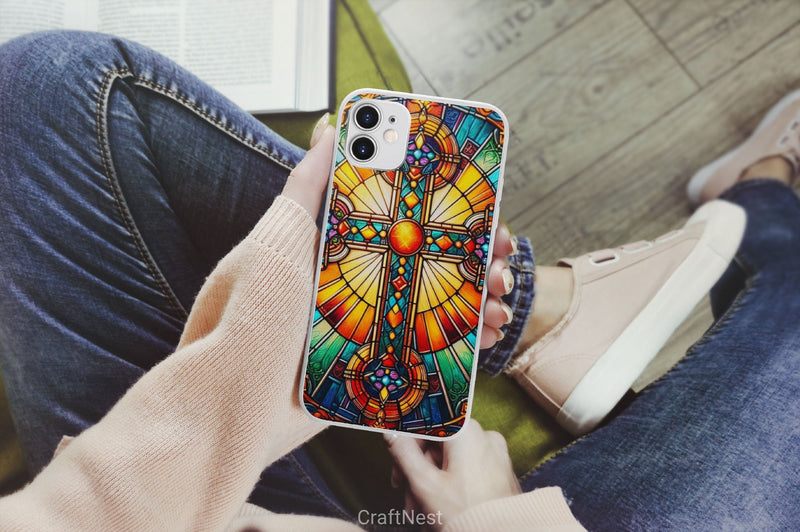 Divine with this Stained Glass Cross Tarot Card Clipart Bundle, featuring spiritual glass fortune designs, perfect for religious mystical crafts.