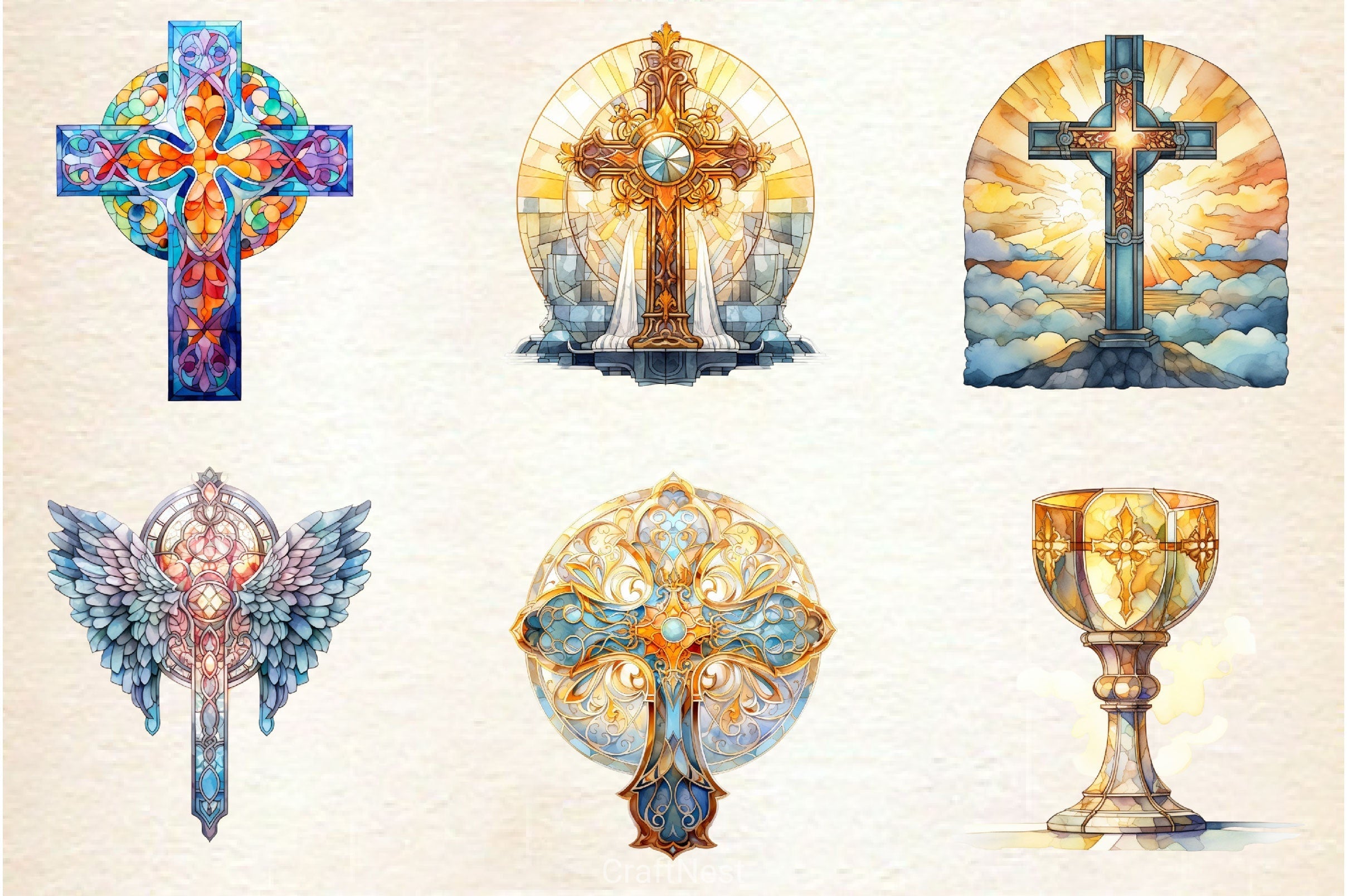 Beautiful stained glass Easter cross designs for religious spring projects.