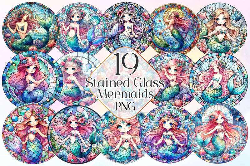 Stained Glass Mermaid Wind Spinner Clipart Bundle
