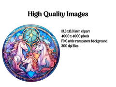 Enter a realm of enchantment with our Stained Glass Unicorns clip art. These magical digital illustrations depict unicorns in the intricate style of stained-glass, featuring vibrant hues and intricate patterns, perfect for adding a touch of whimsical beauty and fantasy to your designs, whether for fairy tale-inspired artwork, unicorn-themed events, or mystical creations, capturing the timeless allure of unicorns in luminous colors.