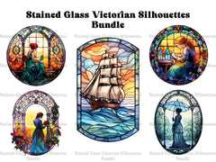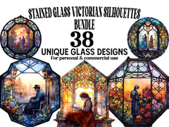 Transport yourself to a bygone era with our Stained Glass Victorian Silhouettes clip art. These elegant digital illustrations showcase Victorian silhouettes rendered in the style of stained-glass, featuring intricate details and vintage charm, perfect for adding a touch of nostalgia and sophistication to your designs, whether for historical projects, Victorian-themed decor, or artistic expressions, evoking the elegance and grace of the Victorian era.