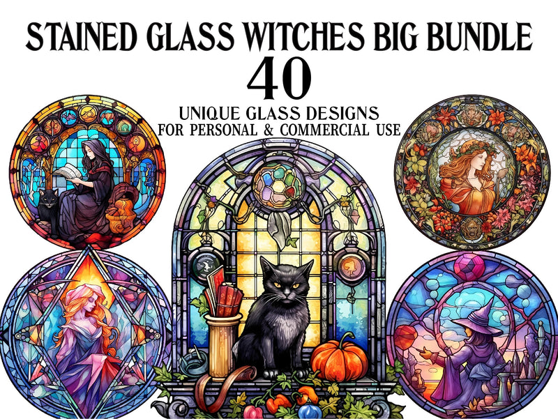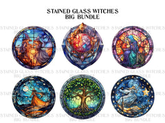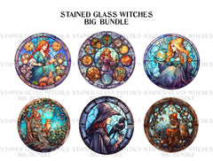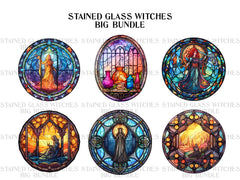 Cast a spell of enchantment with our Stained Glass Witches clip art. These mystical digital illustrations feature witches, cauldrons, and magical symbols rendered in the style of stained-glass, perfect for adding a touch of mystical allure and Halloween magic to your designs, whether for witch-themed parties, spooky decorations, or mystical-themed artwork, conjuring visions of witchcraft and wizardry in vibrant hues.