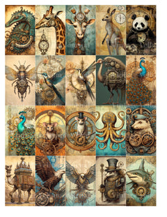 Explore a fantastical realm where gears and gadgets meet the wonders of the animal kingdom in our Steampunk Animals digital junk journal! Featuring a blend of mechanical marvels and whimsical creatures, each page invites you to embark on an adventure through a world where imagination knows no bounds. Perfect for those who love a touch of steampunk charm with a dash of animal magic.