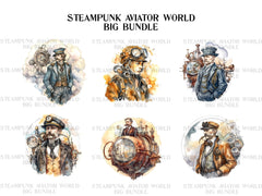 Take to the skies in style with our Steampunk Aviator World clip art. These adventurous digital illustrations portray daring aviators navigating the skies in fantastical flying machines, offering a glimpse into a world where adventure knows no bounds and the sky is the limit for steampunk innovation.