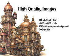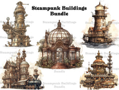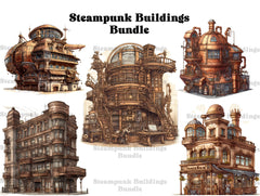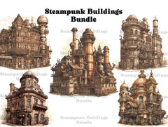 Discover a blend of vintage charm and futuristic flair with our Steampunk Buildings clip art. From towering structures to quaint cottages, these digital illustrations capture the essence of a bygone era merged with the wonders of technology.
