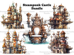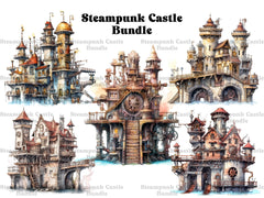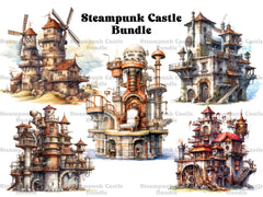 Explore realms of industrial fantasy with our Steampunk Castles clip art. These innovative digital illustrations feature castles infused with steampunk elements, featuring gears, clockwork, and steam-powered contraptions, perfect for adding a touch of retro-futuristic charm and architectural grandeur to your designs, whether for steampunk-themed projects, fantasy artwork, or alternative aesthetics, inviting viewers to marvel at the mechanical wonders of steampunk castles.