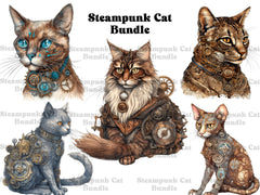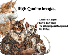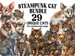 Embark on a journey of imagination with our Steampunk Cats clip art. Featuring a fusion of feline grace and mechanical marvels, these digital illustrations offer a unique twist on classic cat imagery, perfect for adding intrigue to your creative projects.