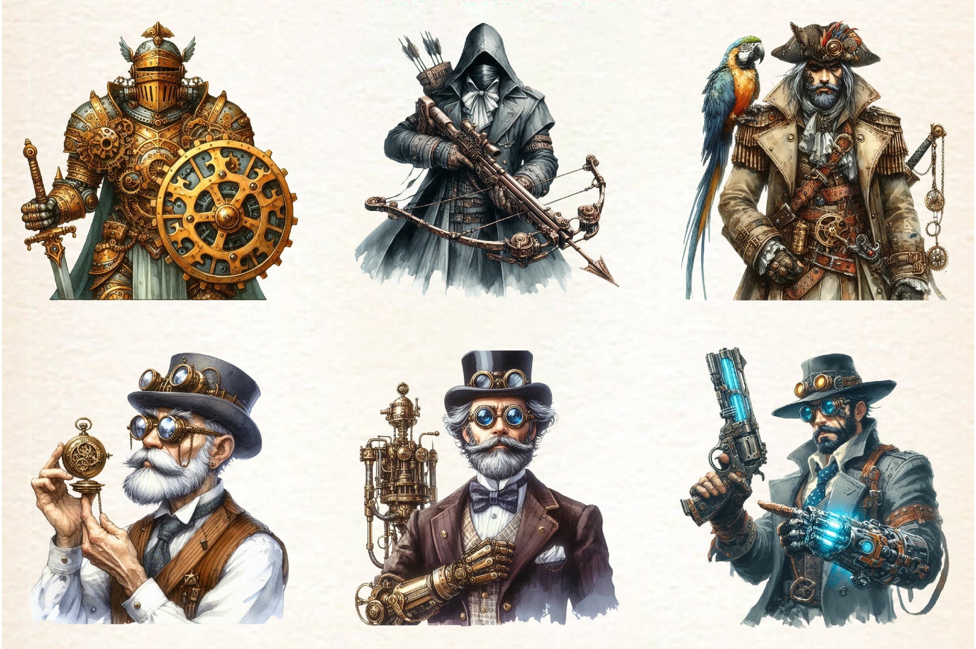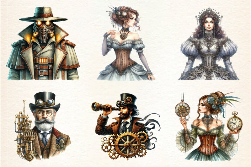 Unleash creativity with our Steampunk Character Clipart Bundle, featuring unique and intricate designs perfect for vintage-inspired projects. Ideal for digital scrapbooking, DIY crafts, and personalized gifts, these high-quality illustrations bring a touch of whimsy and elegance to any creation. Dive into the world of gears, goggles, and Victorian charm with this versatile collection, perfect for artists, designers, and steampunk enthusiasts alike.