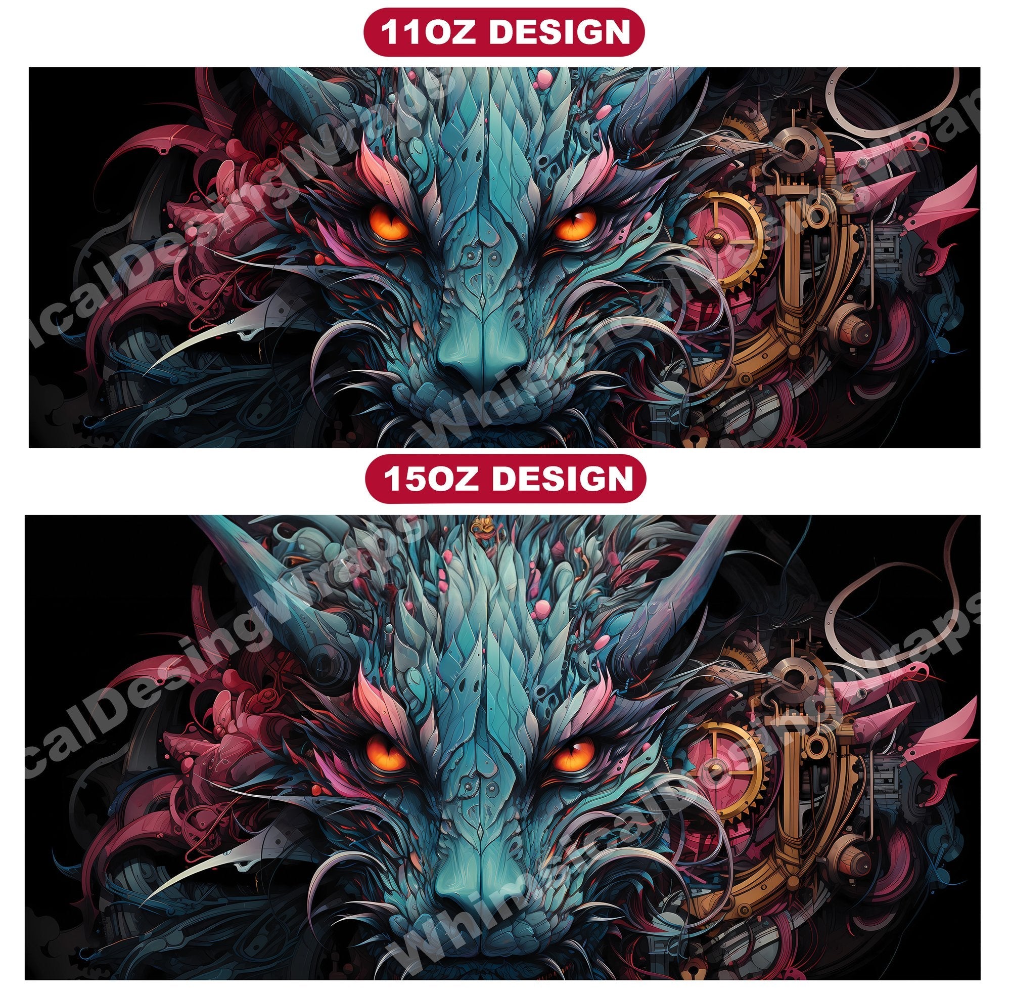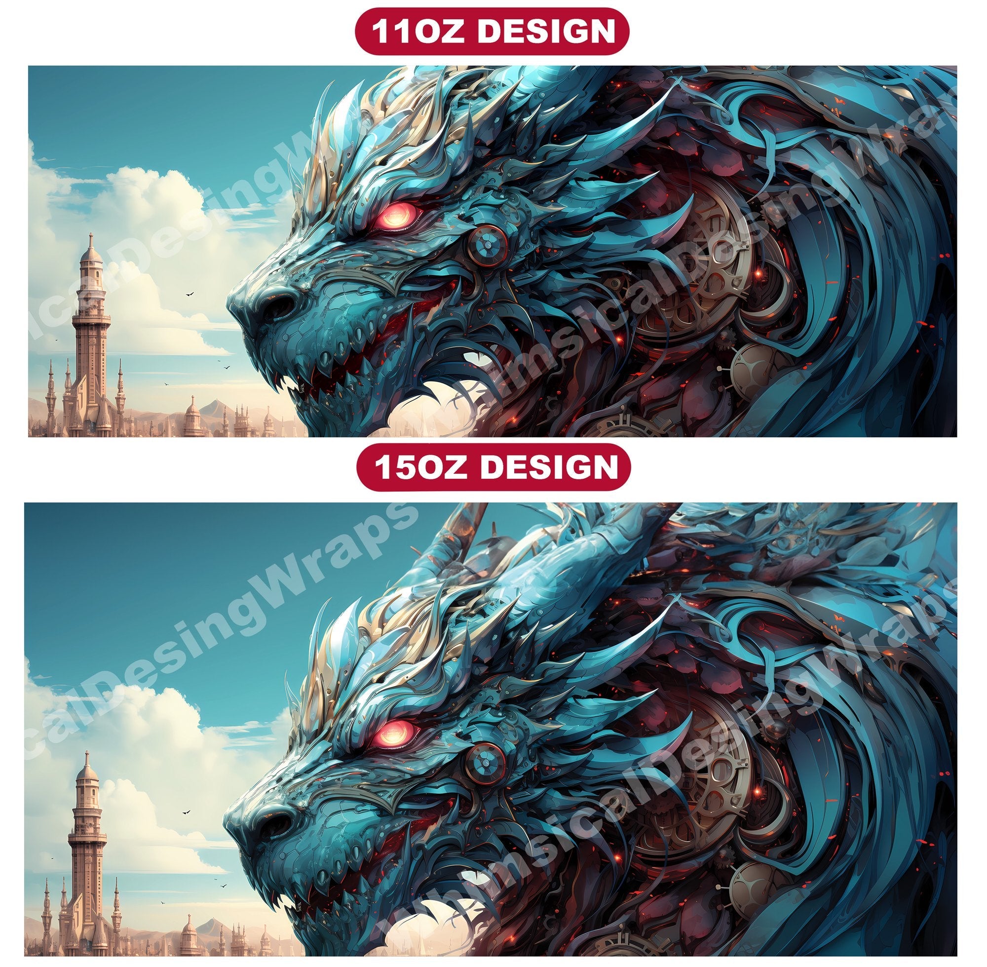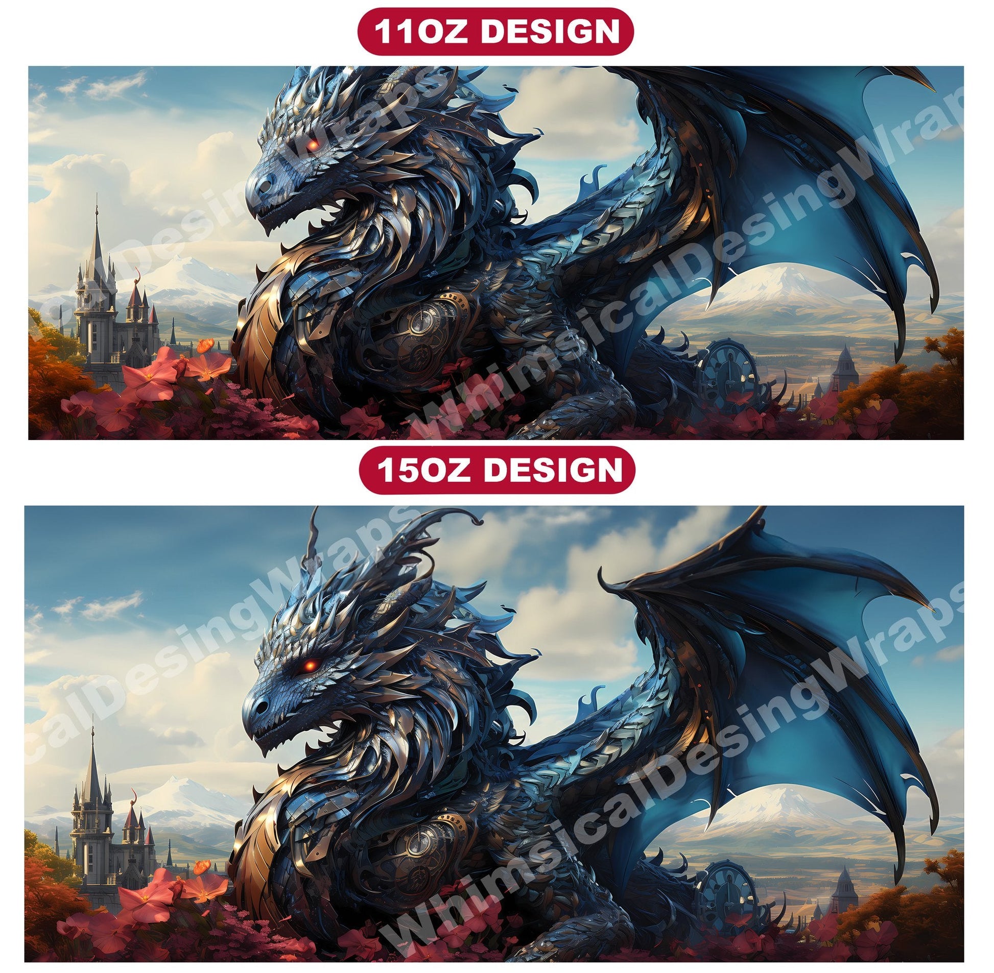 Embark on an adventure through the gears and cogs of imagination with our steampunk dragon digital mug wraps. These intricate designs blend the elegance of dragons with the industrial flair of steampunk, capturing the imagination with their fusion of fantasy and technology, making them a unique addition to your mug collection.