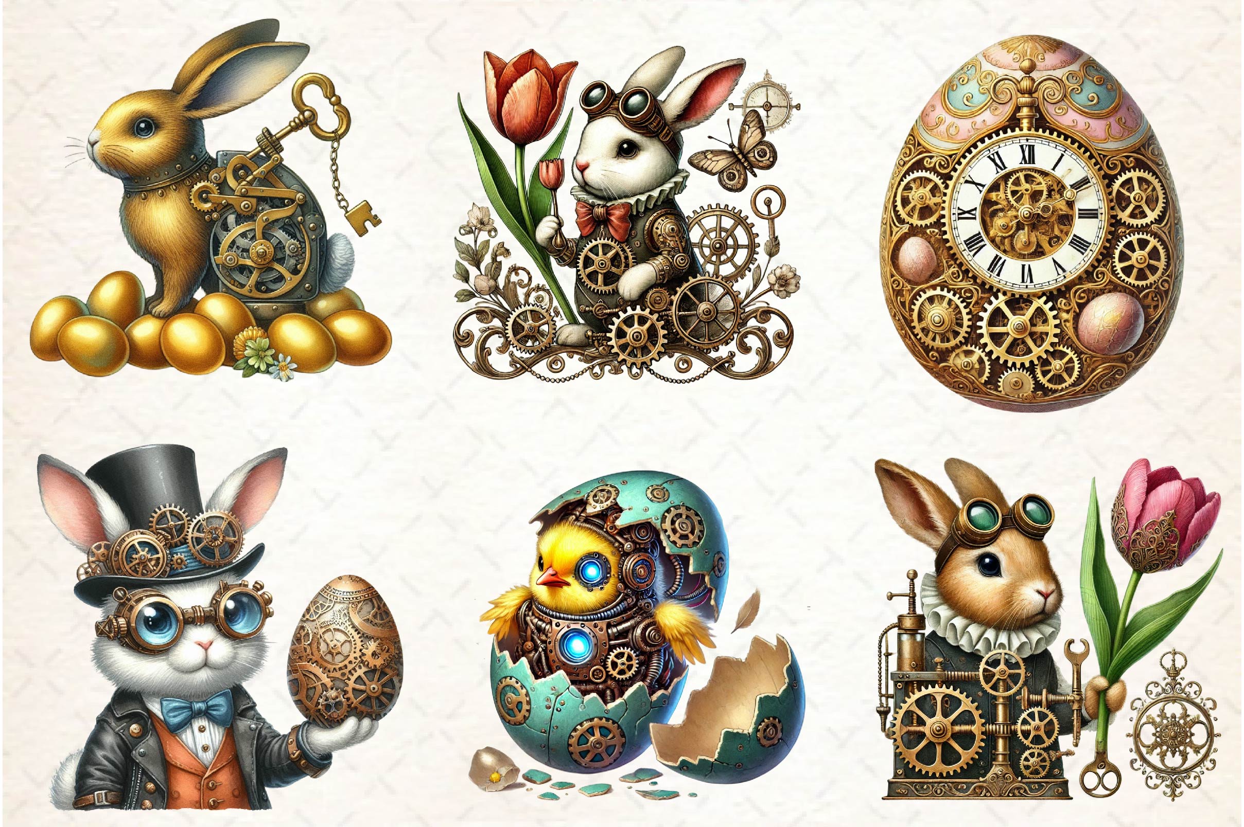 Gear with this Steampunk Easter Clipart Bundle, featuring mechanical Easter designs, perfect for industrial holiday crafts.