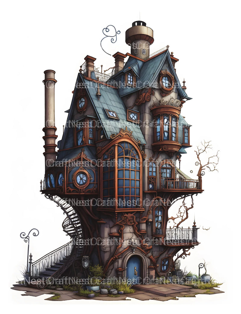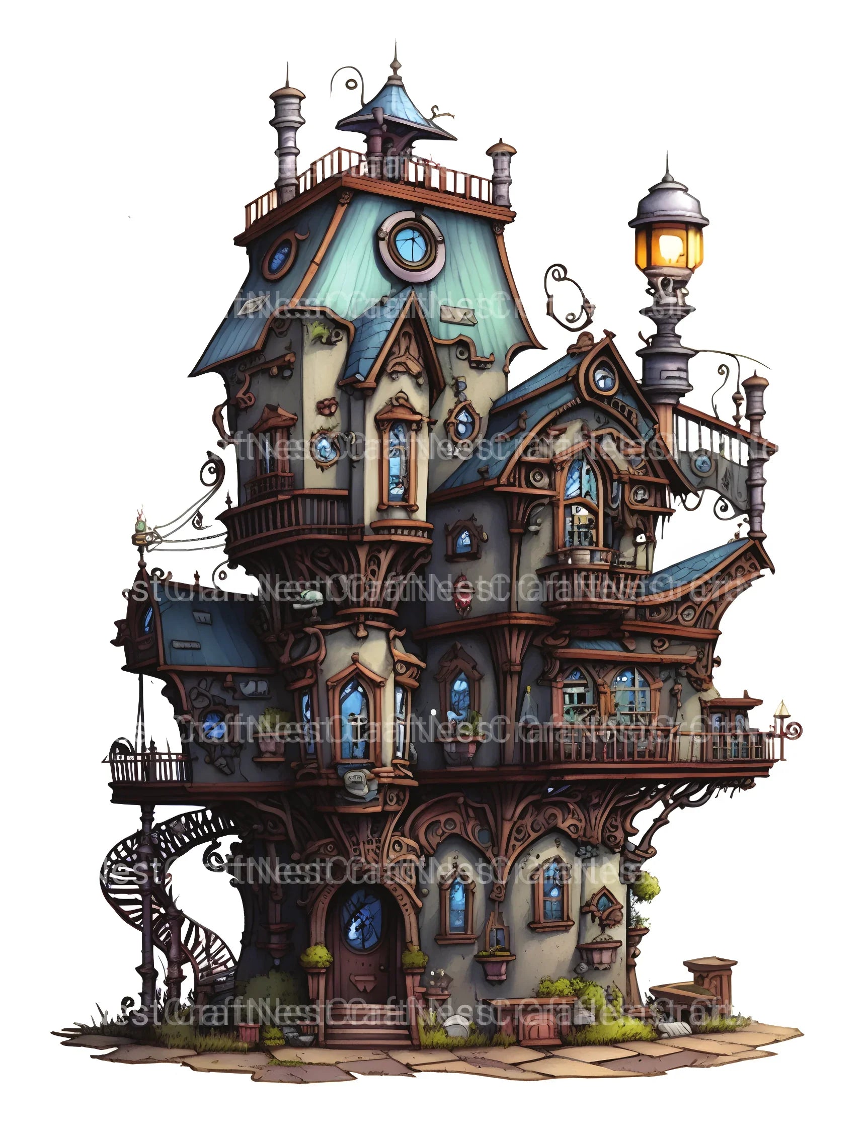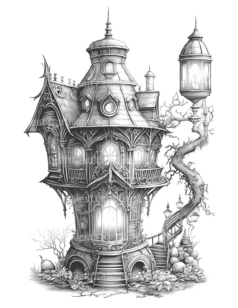 Unleash your creativity with the Steampunk Fairy House Coloring Book, featuring intricate steampunk-inspired fairy house designs, perfect for fantasy art enthusiasts and unique craft projects.