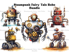 Enter a world of whimsical invention with our Steampunk Fairy Tale Robots clip art. These charming digital illustrations depict robots infused with steampunk elements, featuring gears, brass, and intricate details, perfect for adding a touch of retro-futuristic charm and mechanical magic to your designs, whether for fairy tale-inspired projects, fantasy artwork, or imaginative storytelling, where the enchantment of fairy tales meets the ingenuity of steampunk innovation.