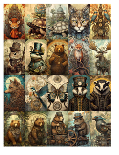 Steampunk Forest Animals Junk Journal Pages