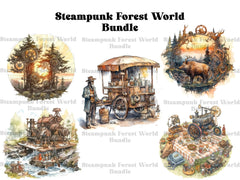 Immerse yourself in a realm where nature and machinery intertwine with our Steampunk Forest World clip art. These captivating digital illustrations depict a lush forest adorned with intricate steam-powered contraptions, inviting you to explore a world where fantasy and technology collide.