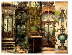 Steampunk Garden World Junk Journal Pages