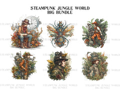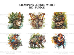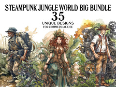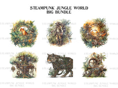 Venture into the heart of adventure with our Steampunk Jungle World clip art. These captivating digital illustrations depict a lush jungle teeming with mechanical wonders, offering a glimpse into a world where nature's beauty is enhanced by the ingenuity of steampunk innovation.