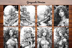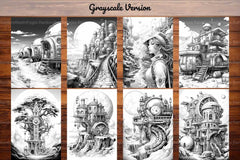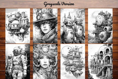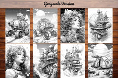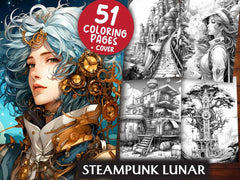 Embark on a celestial journey with our digital coloring book featuring steampunk lunar landscapes! From towering lunar cities to whimsical space faring vessels, each page invites you to explore the wonders of a Victorian-inspired moon. Let your imagination soar to new heights as you add your own artistic flair to these cosmic scenes, celebrating the fusion of steampunk aesthetics with the mysteries of the lunar frontier.