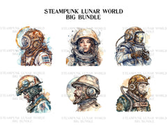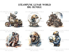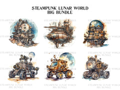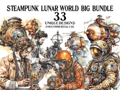 Embark on a journey to the stars with our Steampunk Lunar World clip art. These imaginative digital illustrations transport you to a lunar landscape infused with retro-futuristic elements, offering a glimpse into a world where steam-powered wonders adorn the celestial realm.
