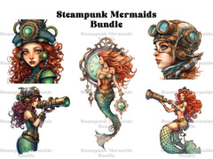Embark on a journey of mechanical marvels with our Steampunk Mermaids clip art. These innovative digital illustrations portray mermaids infused with steampunk elements, featuring gears, goggles, and intricate machinery, perfect for adding a touch of retro-futuristic charm and industrial elegance to your designs, whether for steampunk-themed events, fantasy artwork, or alternative aesthetics, capturing the adventurous spirit of steampunk innovation, where the depths of the sea meet the ingenuity of technology.