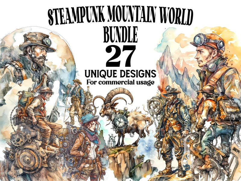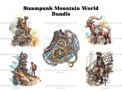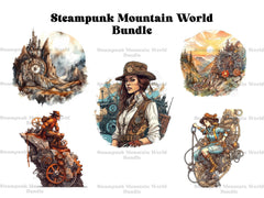 Ascend to new heights with our Steampunk Mountain World clip art. These breathtaking digital illustrations showcase towering peaks adorned with intricate machinery, offering a glimpse into a world where rugged landscapes are transformed into majestic steampunk wonders.