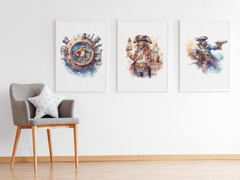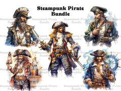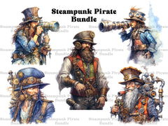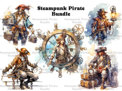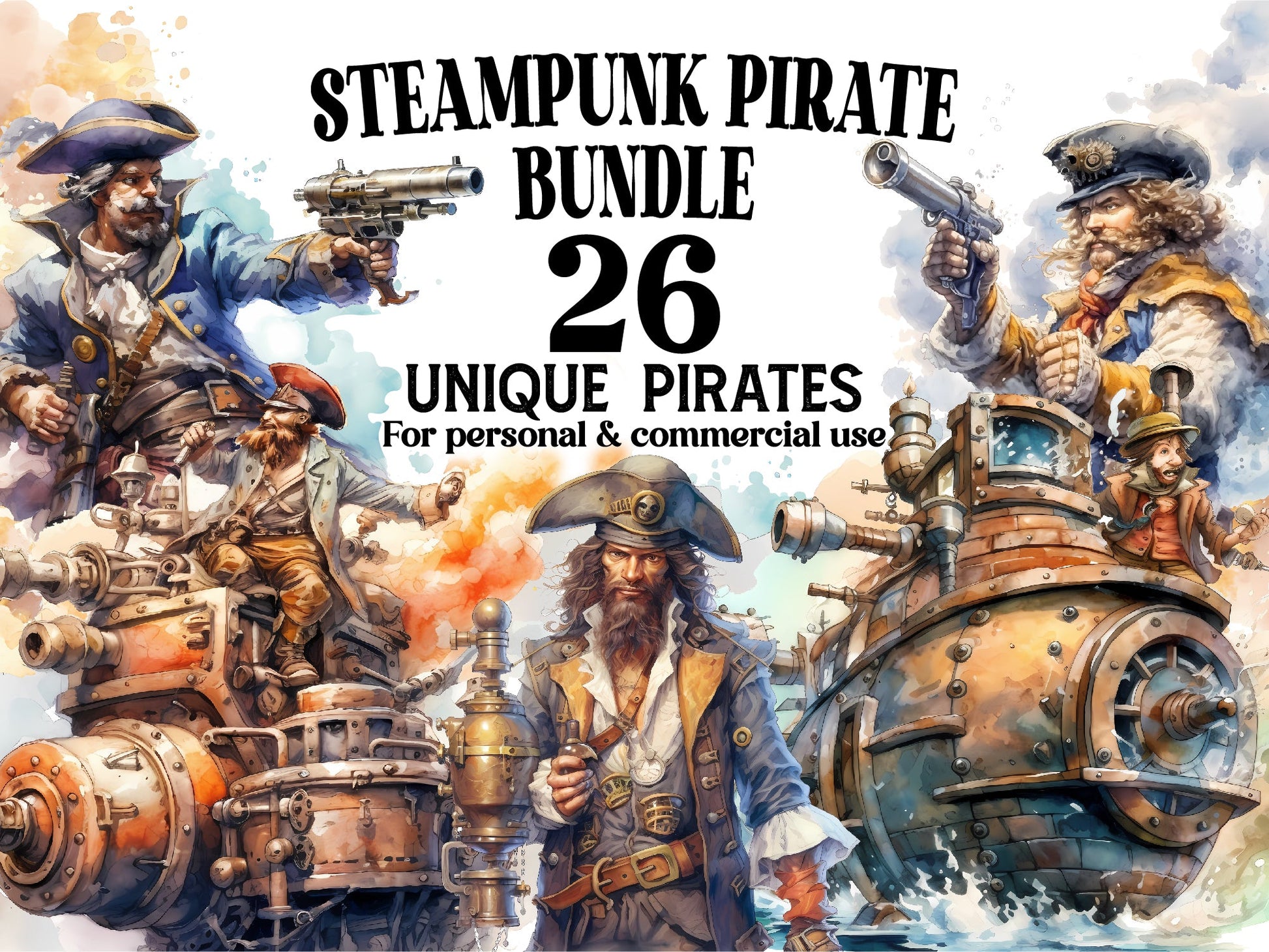 Set sail for adventure with our Steampunk Pirates clip art. These swashbuckling digital illustrations depict pirates outfitted with steampunk gadgets, weaponry, and airship vessels, perfect for adding a touch of retro-futuristic intrigue and nautical charm to your designs, whether for pirate-themed projects, fantasy artwork, or imaginative storytelling, where the romance of piracy meets the innovation of steampunk technology.