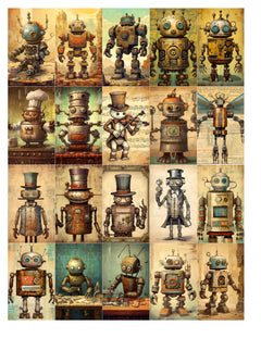 Dive into a world of mechanical marvels with our Steampunk Robots digital junk journal. Overflowing with illustrations of clockwork automatons and retro-futuristic contraptions, each page captures the charm and ingenuity of steampunk robotics, inviting you to explore a realm where technology and imagination merge in whimsical harmony, offering endless inspiration for your creative endeavors.