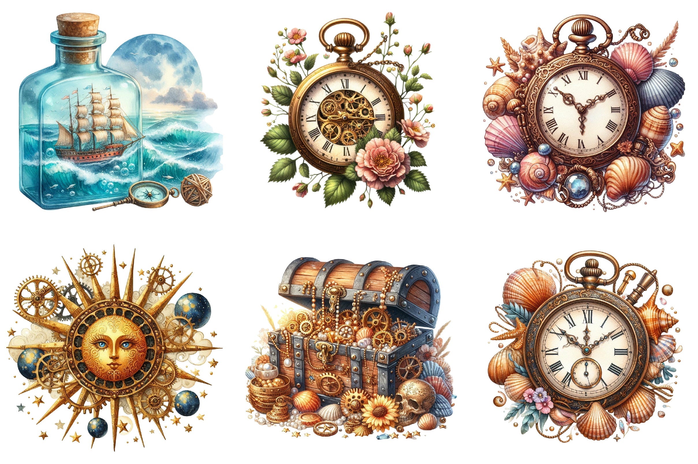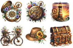 Unleash creativity with the Steampunk Summer Clipart Bundle, featuring unique vintage designs perfect for crafting, scrapbooking, and digital projects. Dive into a world of gears and goggles with this versatile collection, ideal for adding a touch of retro-futuristic charm to your creations. Perfect for artists, designers, and DIY enthusiasts looking to enhance their projects with a steampunk twist.