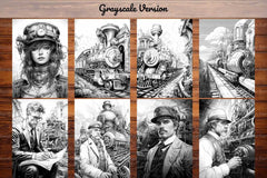 Steampunk Train Coloring Books