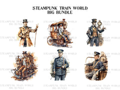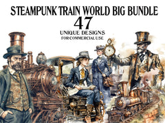 Embark on a journey of discovery with our Steampunk Train World clip art. These nostalgic digital illustrations portray steam-powered locomotives traversing diverse landscapes, inviting you to experience the romance and adventure of rail travel in a world where steam reigns supreme.