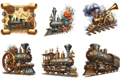 Steampunk Trains Vector Clipart Bundle