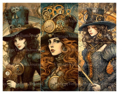 Embark on a journey through time and imagination with our Steampunk Witches digital junk journal. Each page is adorned with witches intertwined with intricate gears and mechanical wonders, blending the mystique of witchcraft with the rugged charm of steampunk aesthetics, perfect for those who delight in the extraordinary and the unconventional.