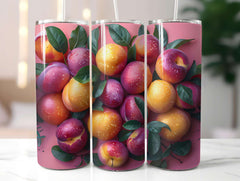 Indulge in the rich and vibrant look of stone fruits with our seamless tumbler wrap. The design features an array of juicy peaches, plums, and cherries, bringing a touch of natural sweetness and color to your drinkware.