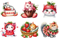 Transform your designs with these adorable strawberry cat graphics, perfect for adding a playful touch to any project.