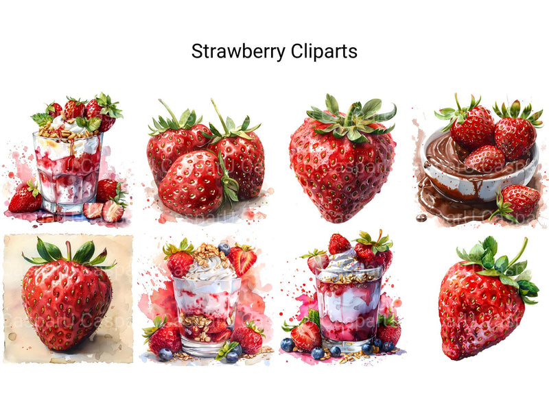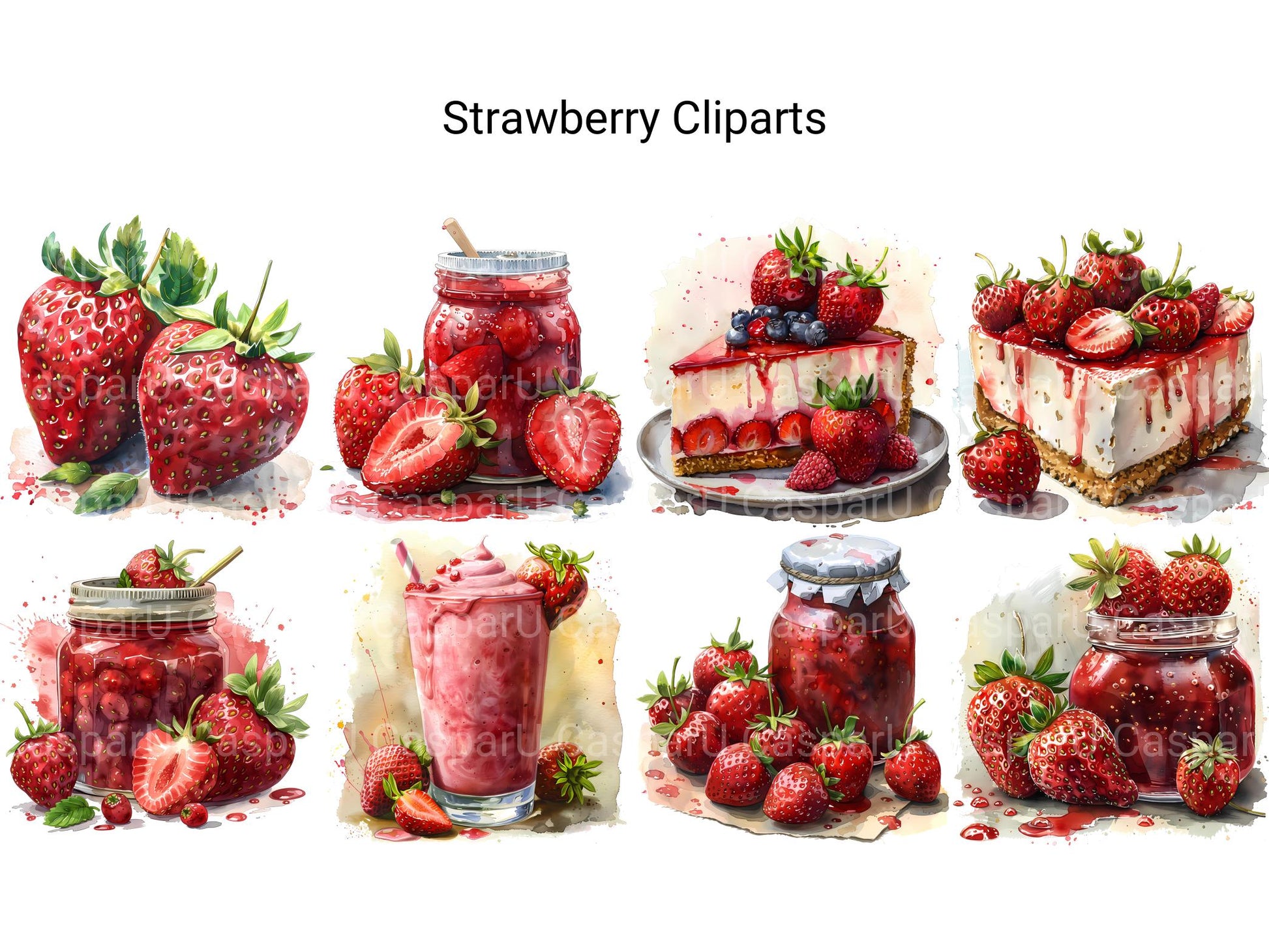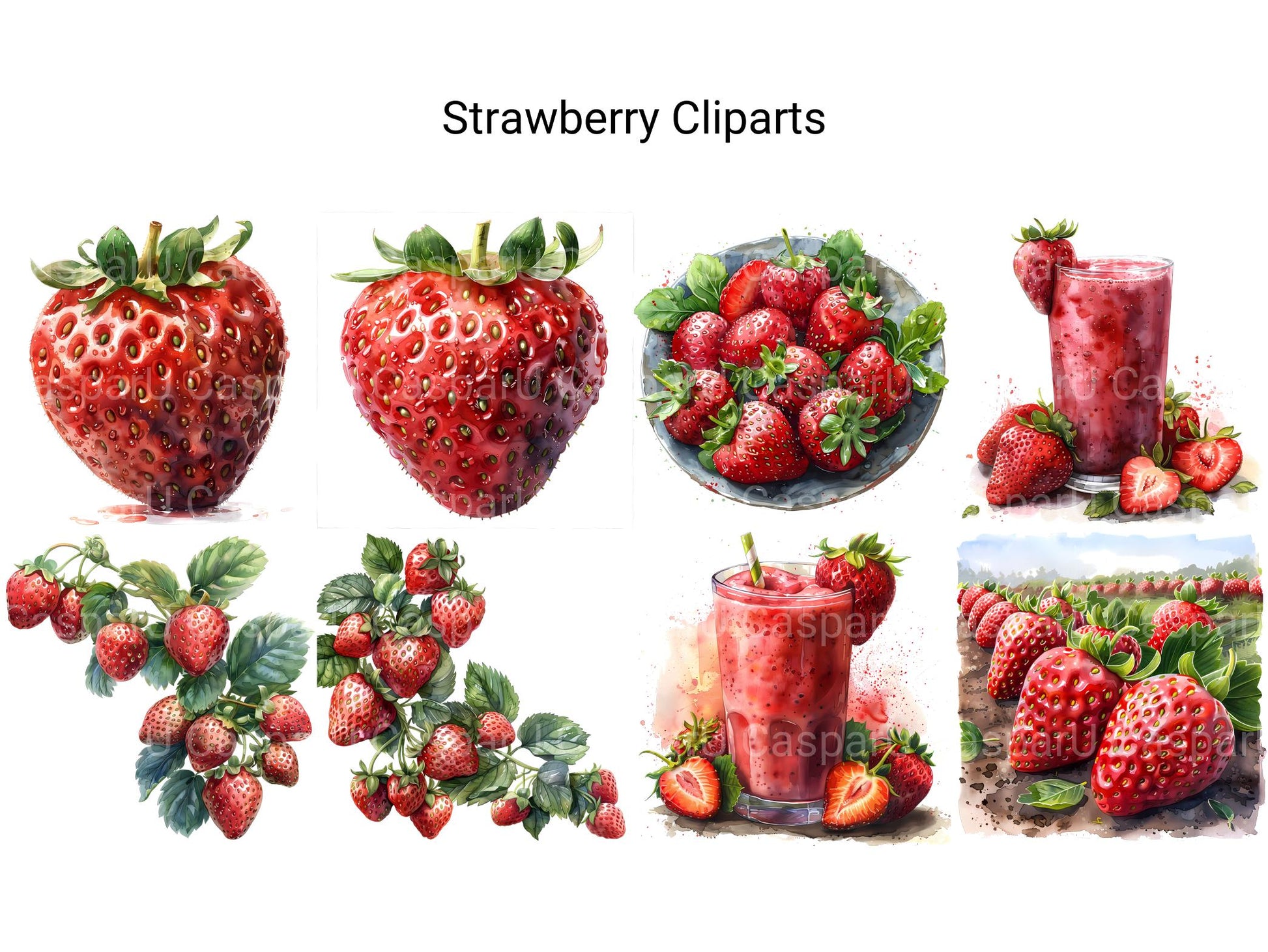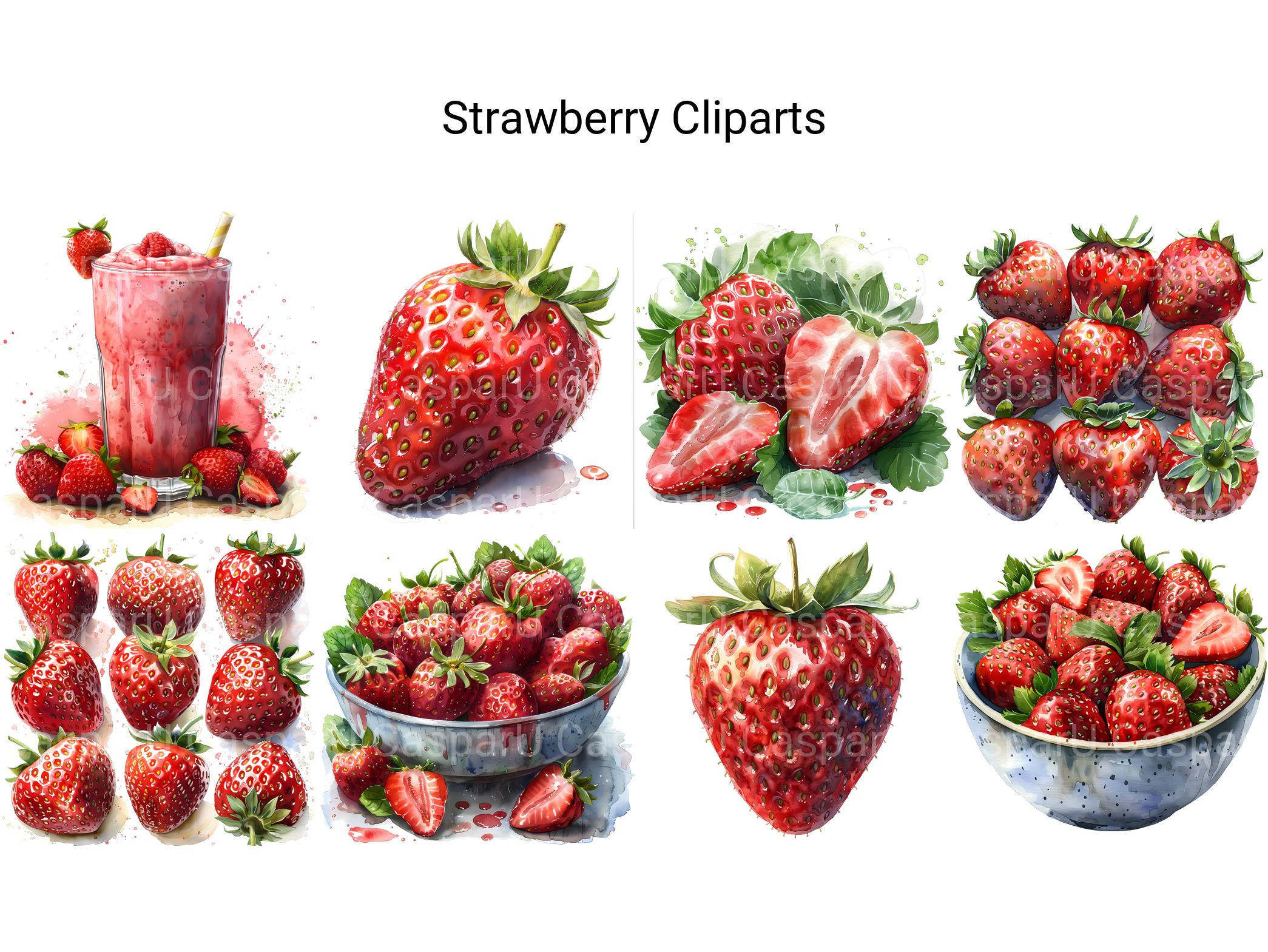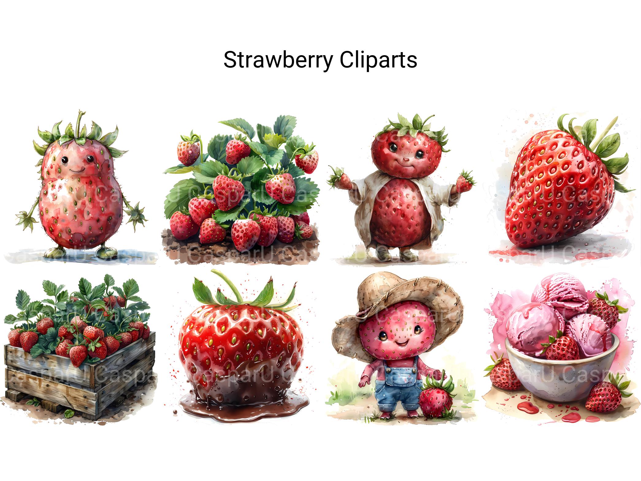 Add a touch of sweetness with our Strawberry clipart. The set includes detailed illustrations of ripe strawberries, creating a fresh and fruity element for your projects. Ideal for food-themed or summer designs.
