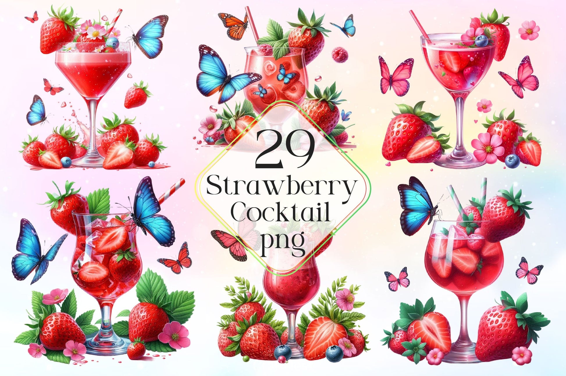 Refreshing strawberry cocktail designs for summer beverage projects.