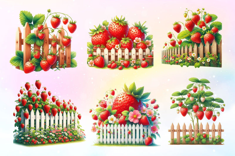 Strawberry Fence Clipart Bundle