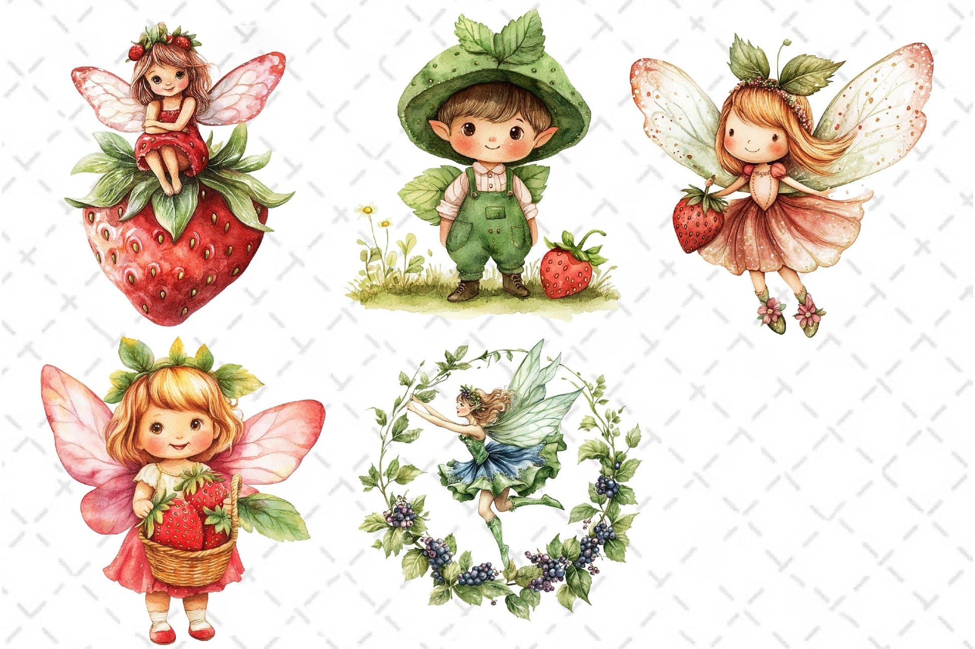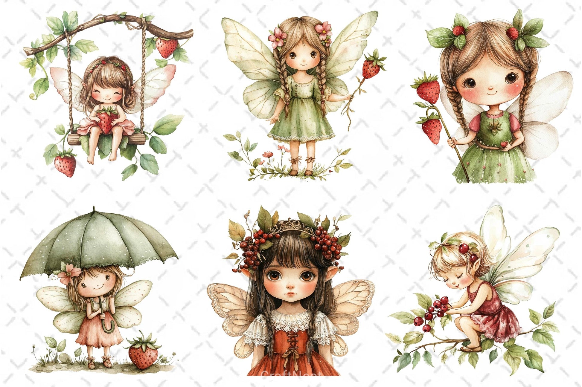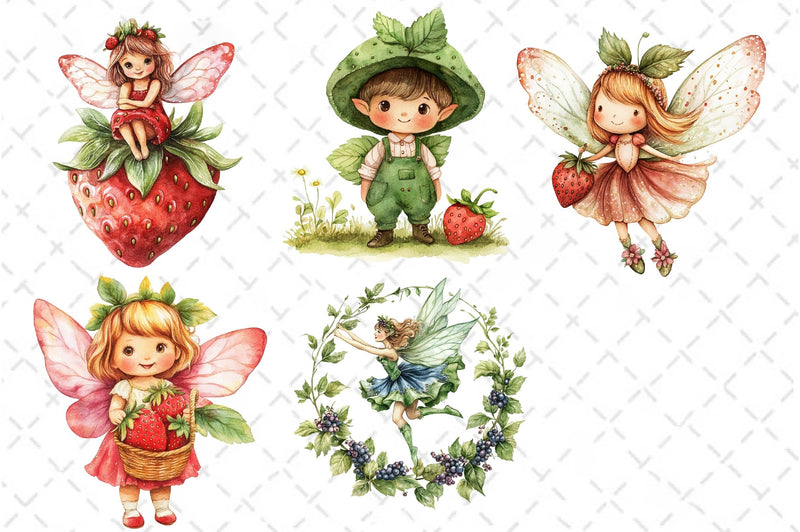 Enchant with this Strawberry Garden Fairies Clipart Bundle, featuring magical berry fairy designs, perfect for fruit fantasy crafts.