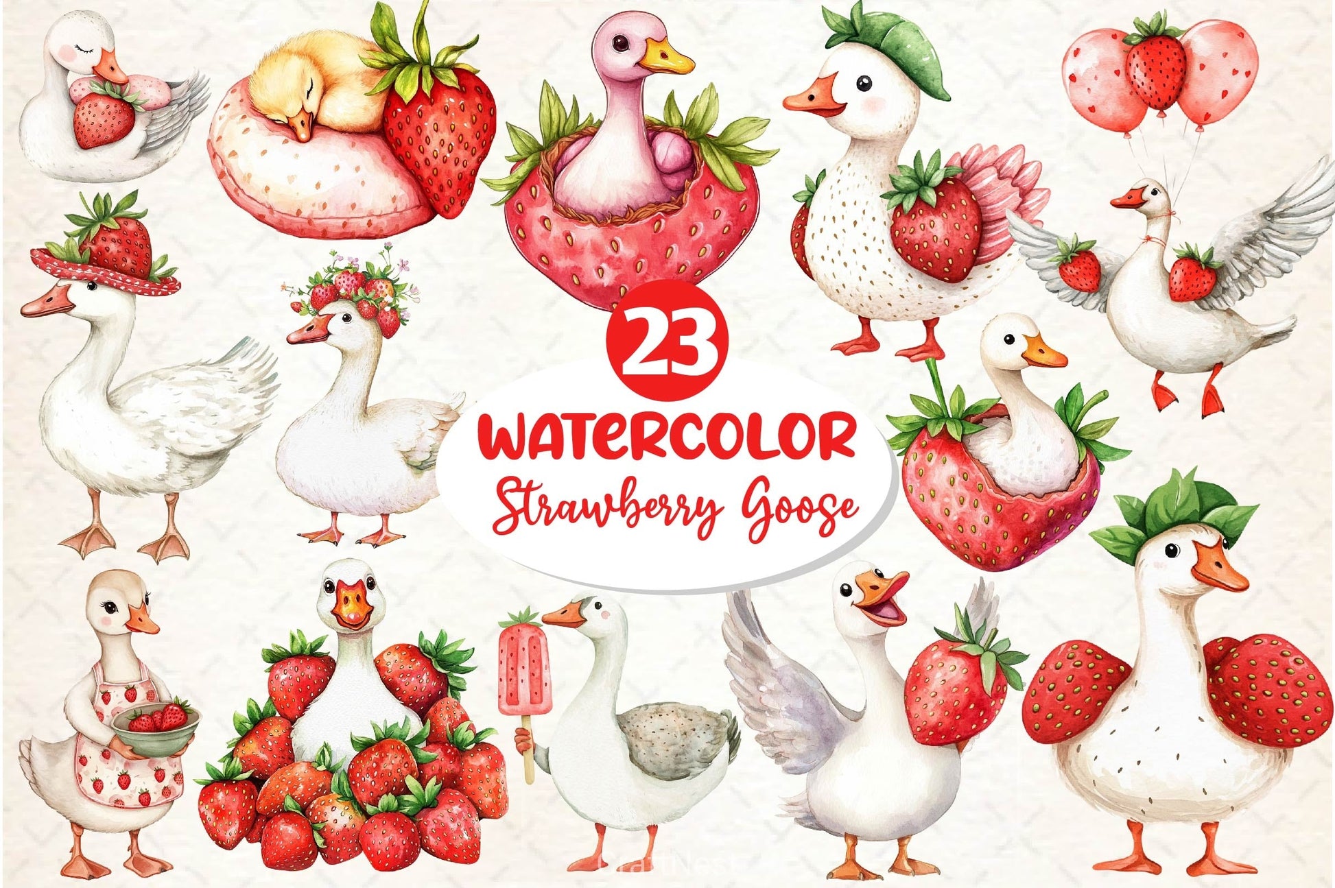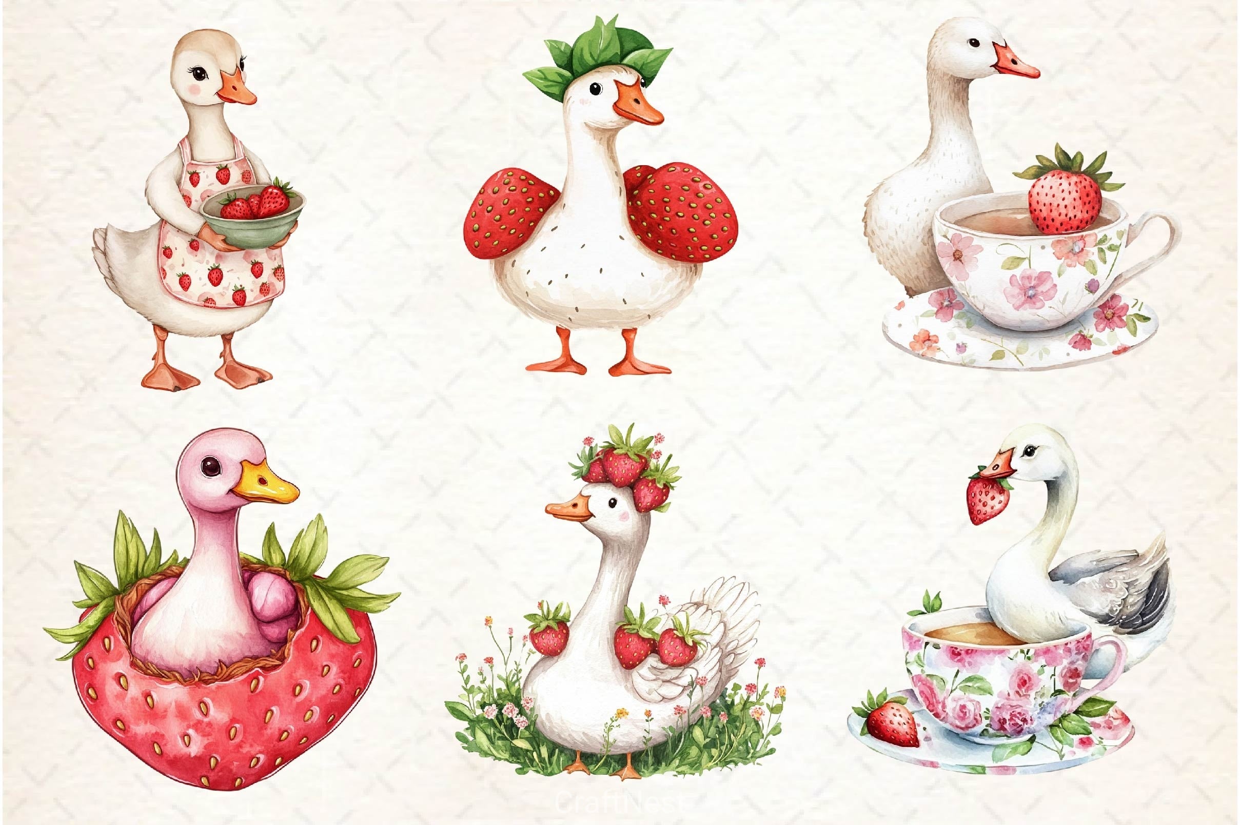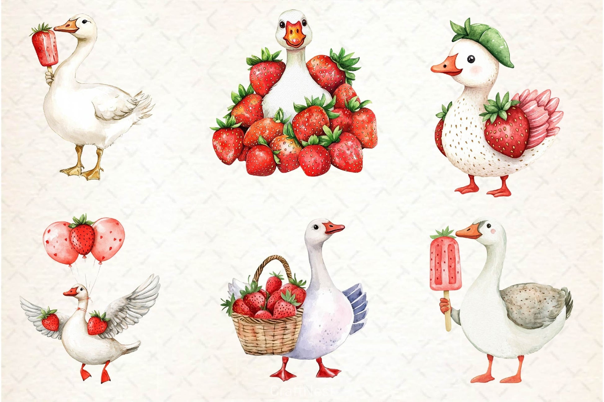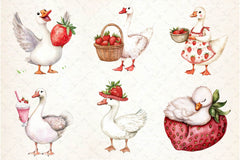 Waddle with this Strawberry Goose Clipart Bundle, featuring sweet strawberry goose designs, ideal for fruit garden crafts.
