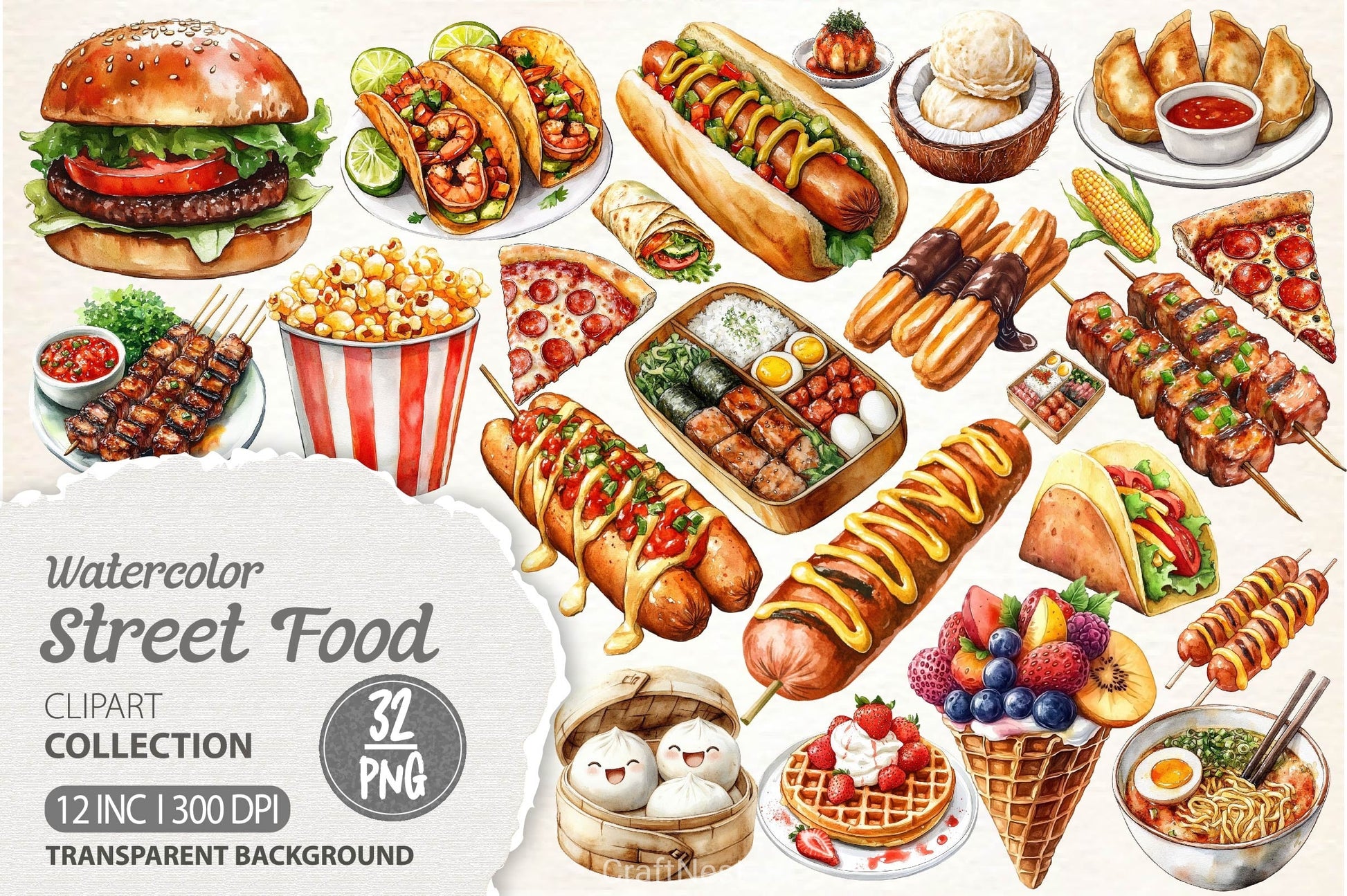Taste with this Street Food Clipart Bundle, featuring delicious street vendor designs, perfect for culinary travel crafts.