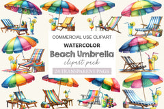 Shade with this Summer Beach Umbrella Clipart Bundle, featuring beach umbrella designs, ideal for coastal summer crafts.