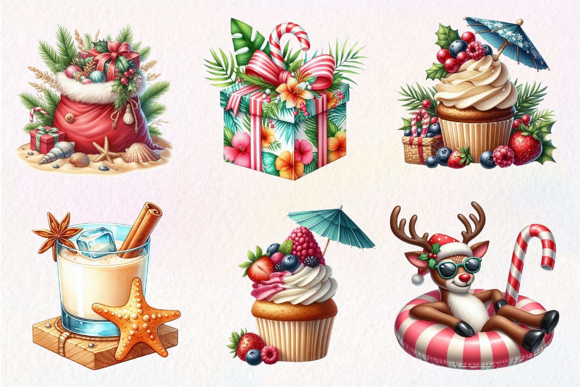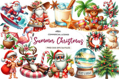 Vacation with this Summer Christmas Clipart Bundle, featuring tropical holiday designs, perfect for summer Christmas crafts.