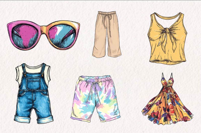 Dress with this Summer Clothes Clipart Bundle, featuring summer clothing designs, perfect for seasonal fashion crafts.
