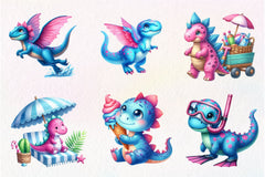 Roar with this Summer Dinosaur Clipart Bundle, featuring prehistoric seasonal designs, ideal for summer animal crafts.
