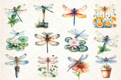 Flutter with this Summer Dragonfly Garden Clipart Bundle, featuring insect garden designs, perfect for summer nature crafts.