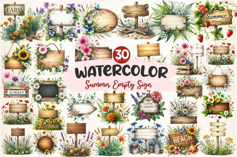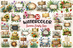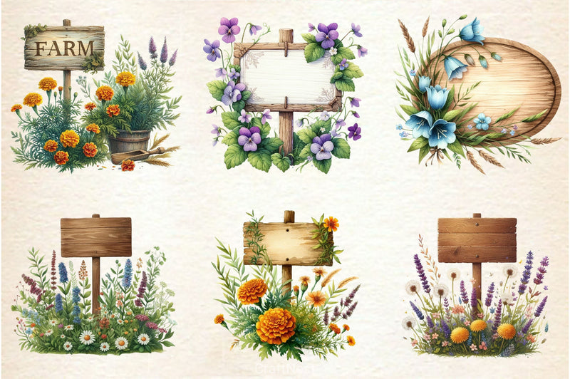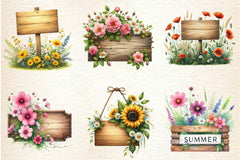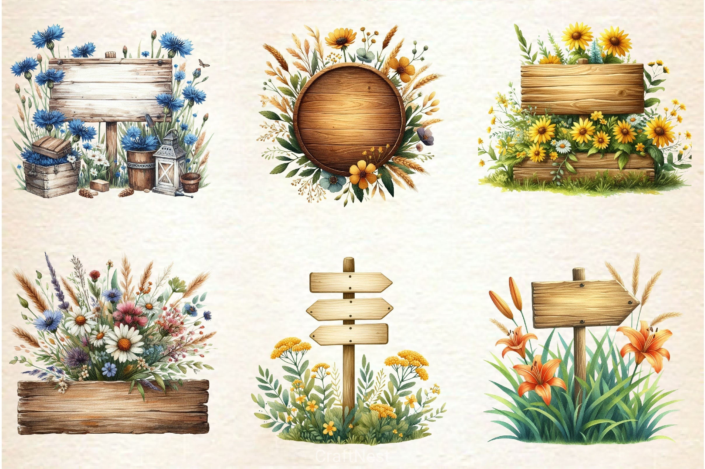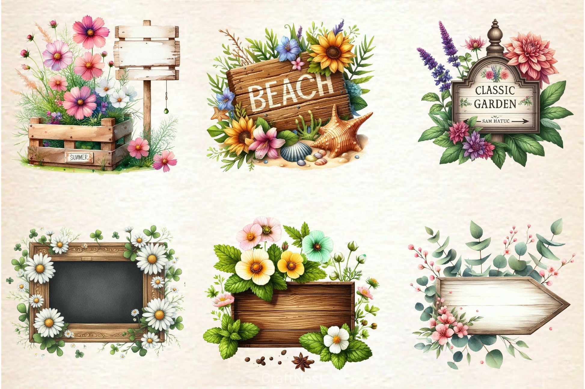 Blank with this Summer Empty Sign Wildflowers Clipart Bundle, featuring customizable flower sign designs, perfect for garden communication crafts.