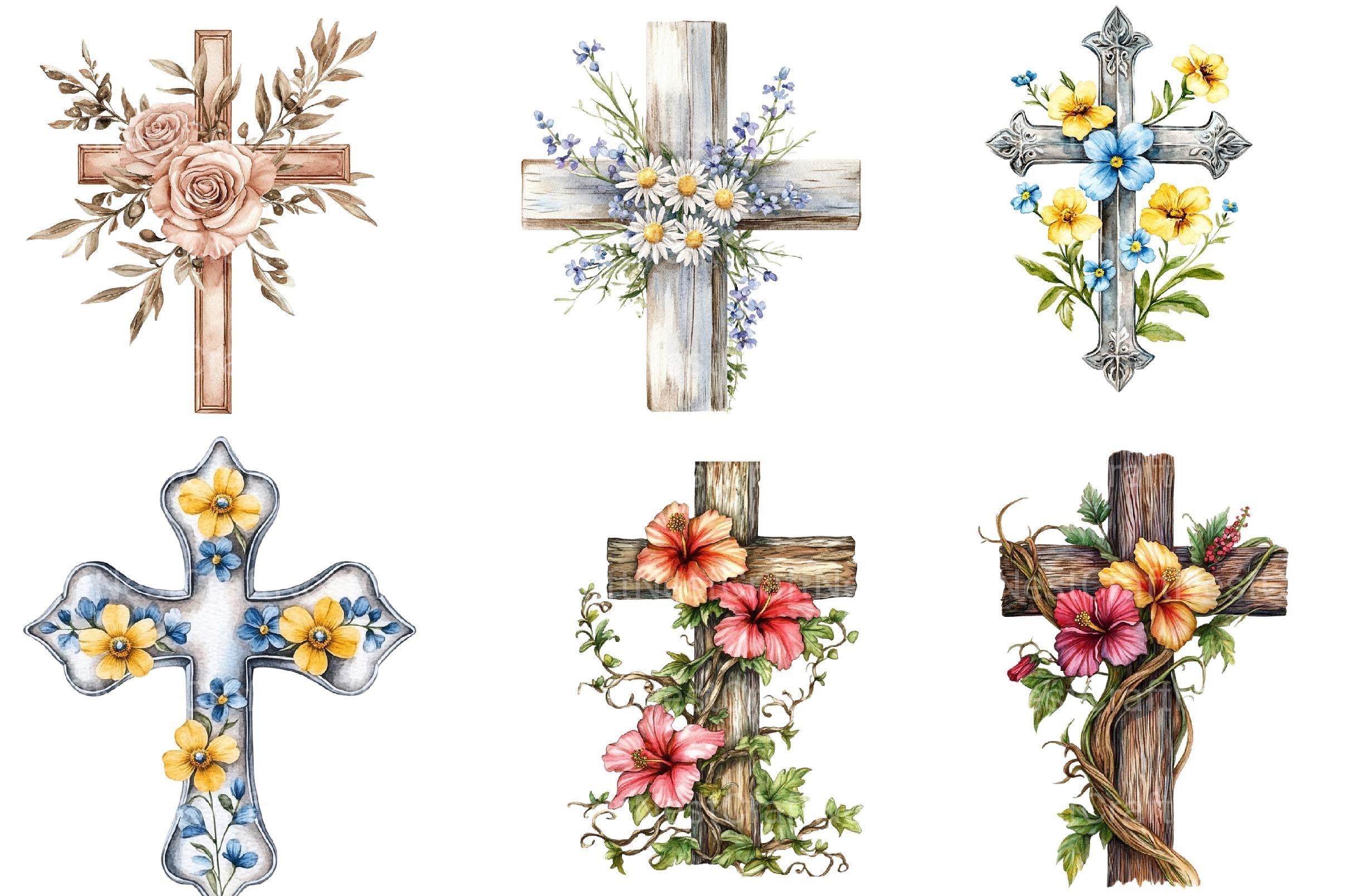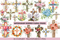 Shine with this Summer Floral Cross Clipart, featuring floral cross designs, ideal for summer crafts.