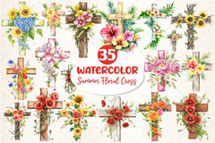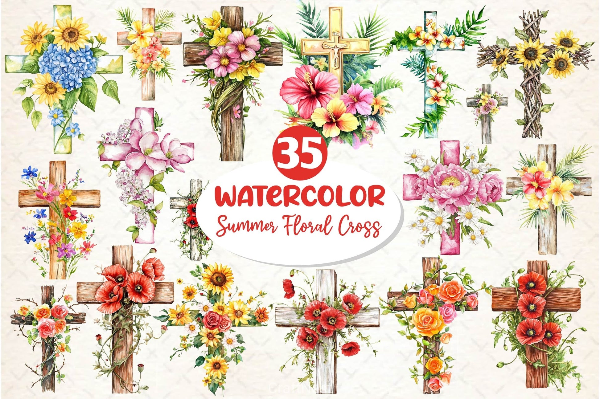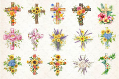 Beautiful summer flowers arranged in cross patterns for religious projects.