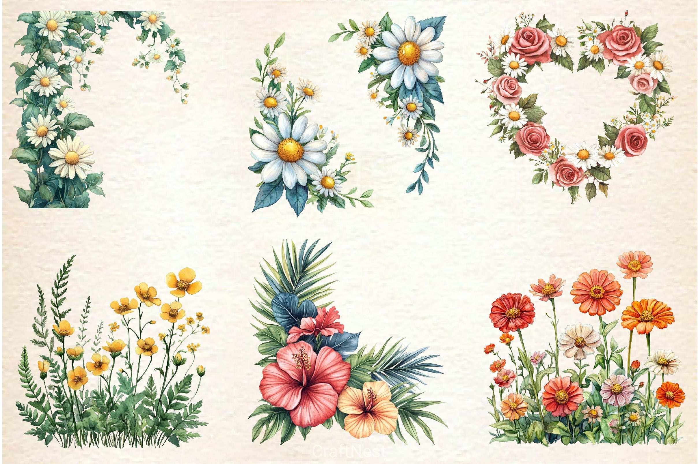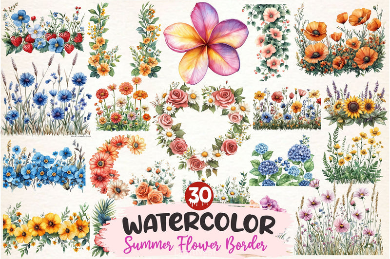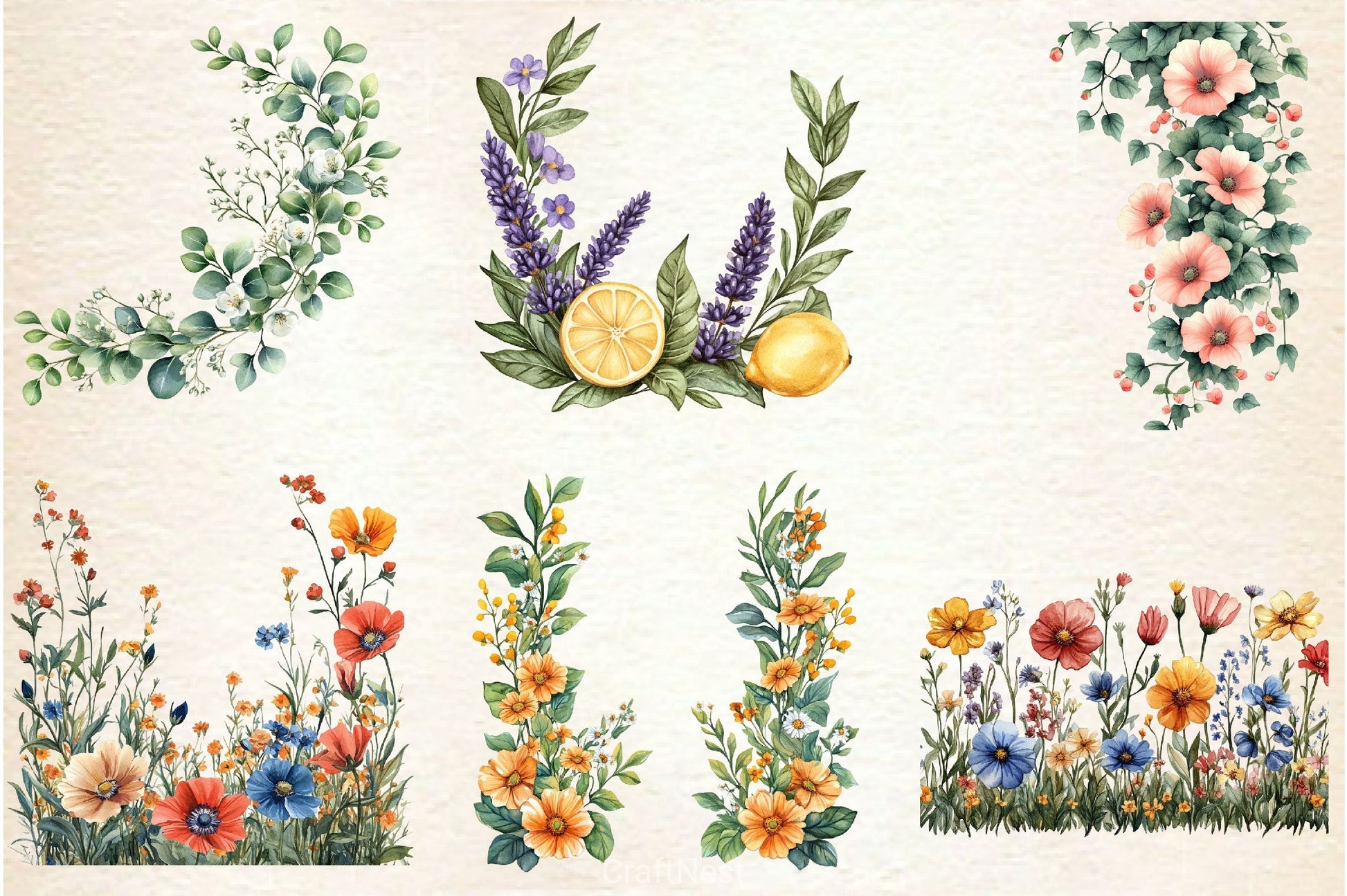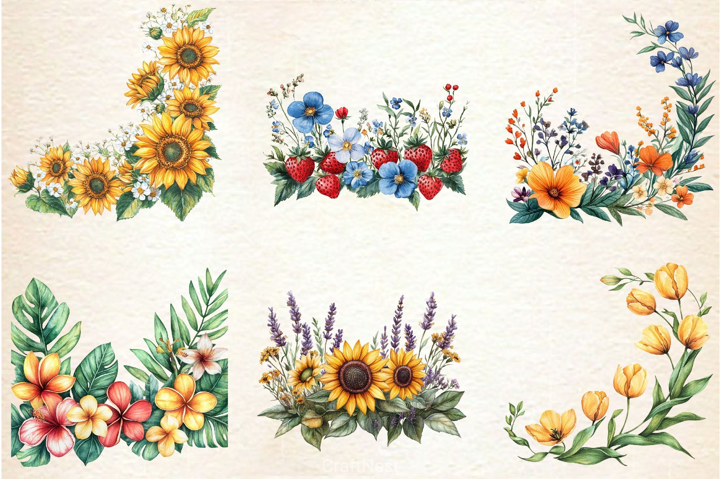 Frame with this Summer Flower Border Clipart Bundle, featuring seasonal floral boundary designs, perfect for garden border crafts.