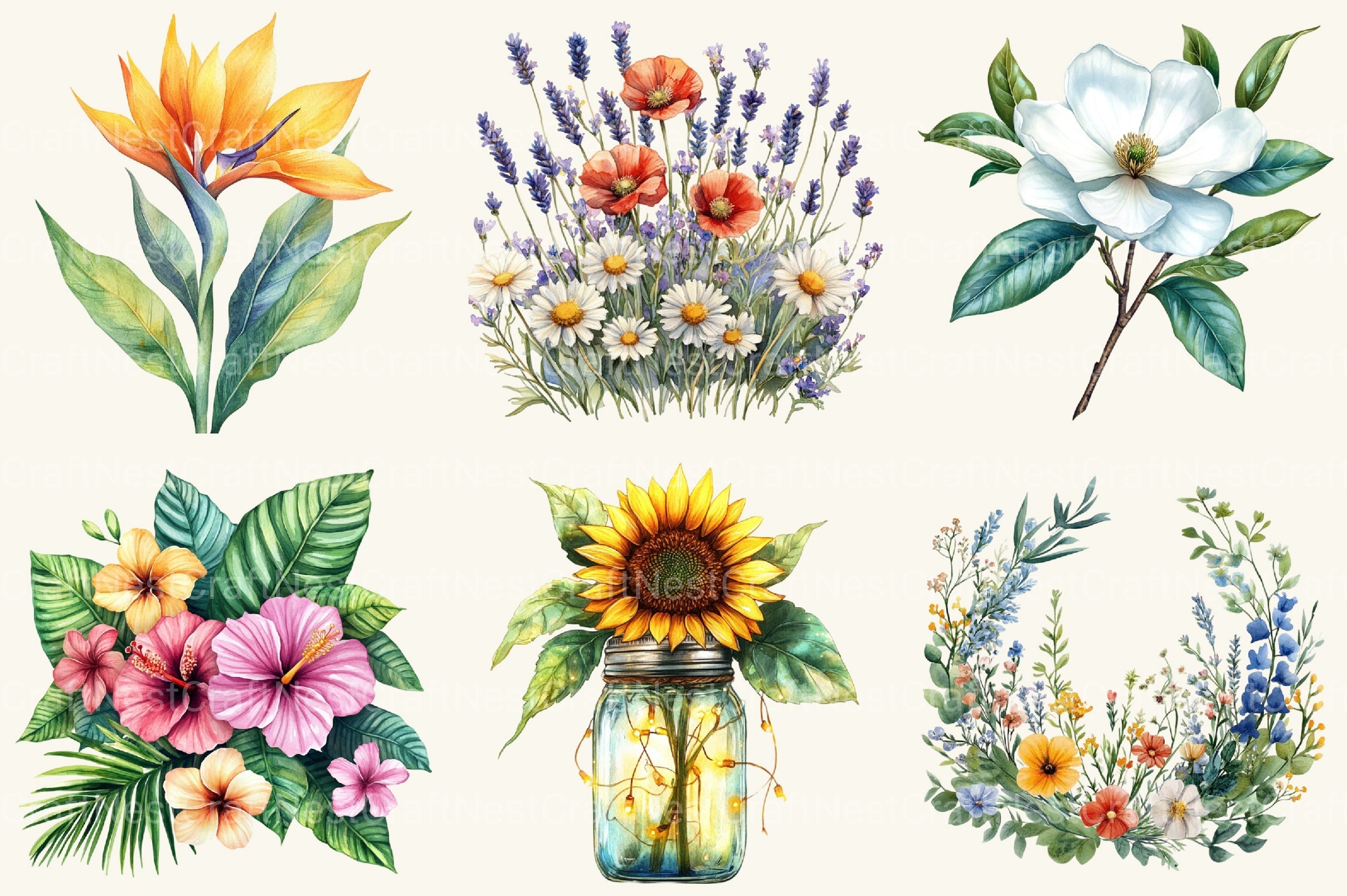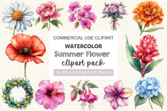 Bloom with this Summer Flower Clipart Bundle, featuring bright summer floral designs, ideal for garden season crafts.