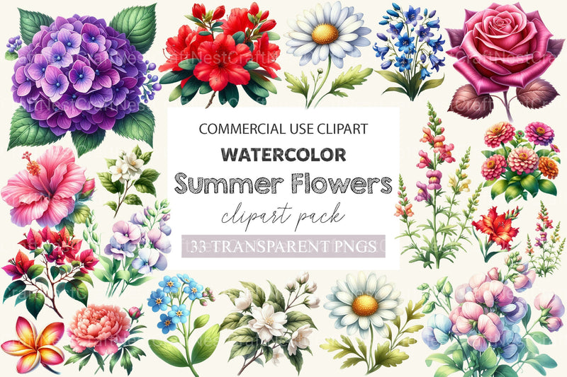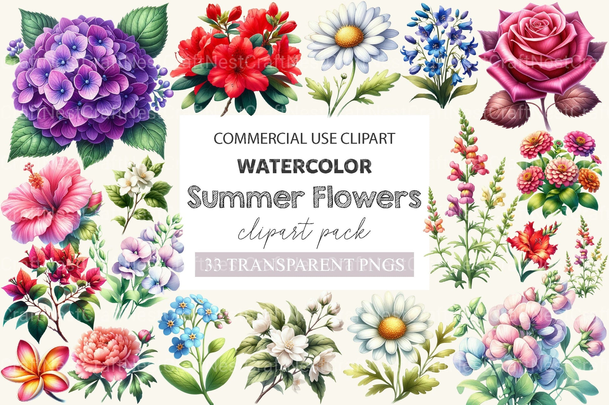 Bloom with this Summer Flowers Clipart Bundle, featuring bright summer floral designs, ideal for garden crafts.
